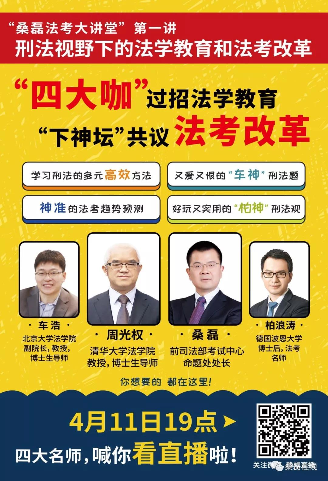 此次讲座定411日(周四)晚7点至9举行。为方便广大法科生,将在一直播平台全程直播。关注“桑磊法考教育”官方微博,即可了解更多讲座资讯。